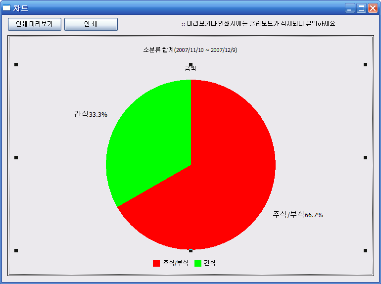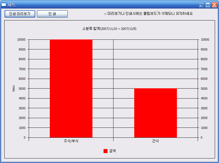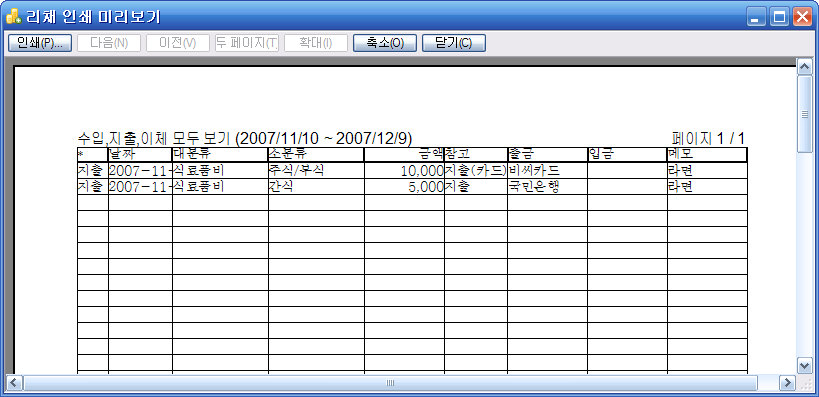 인쇄기능을 지원합니다. 매 달 결산할때 인쇄해서 종이를 보관하면 진짜 가계부가 될 것 같습니다.