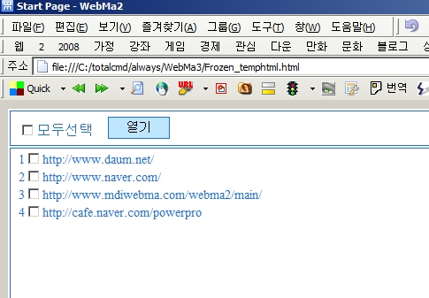 옵션에서 마지막 열었던 페이지를 설정했으면 웹마가 다시 얼어버립니다.